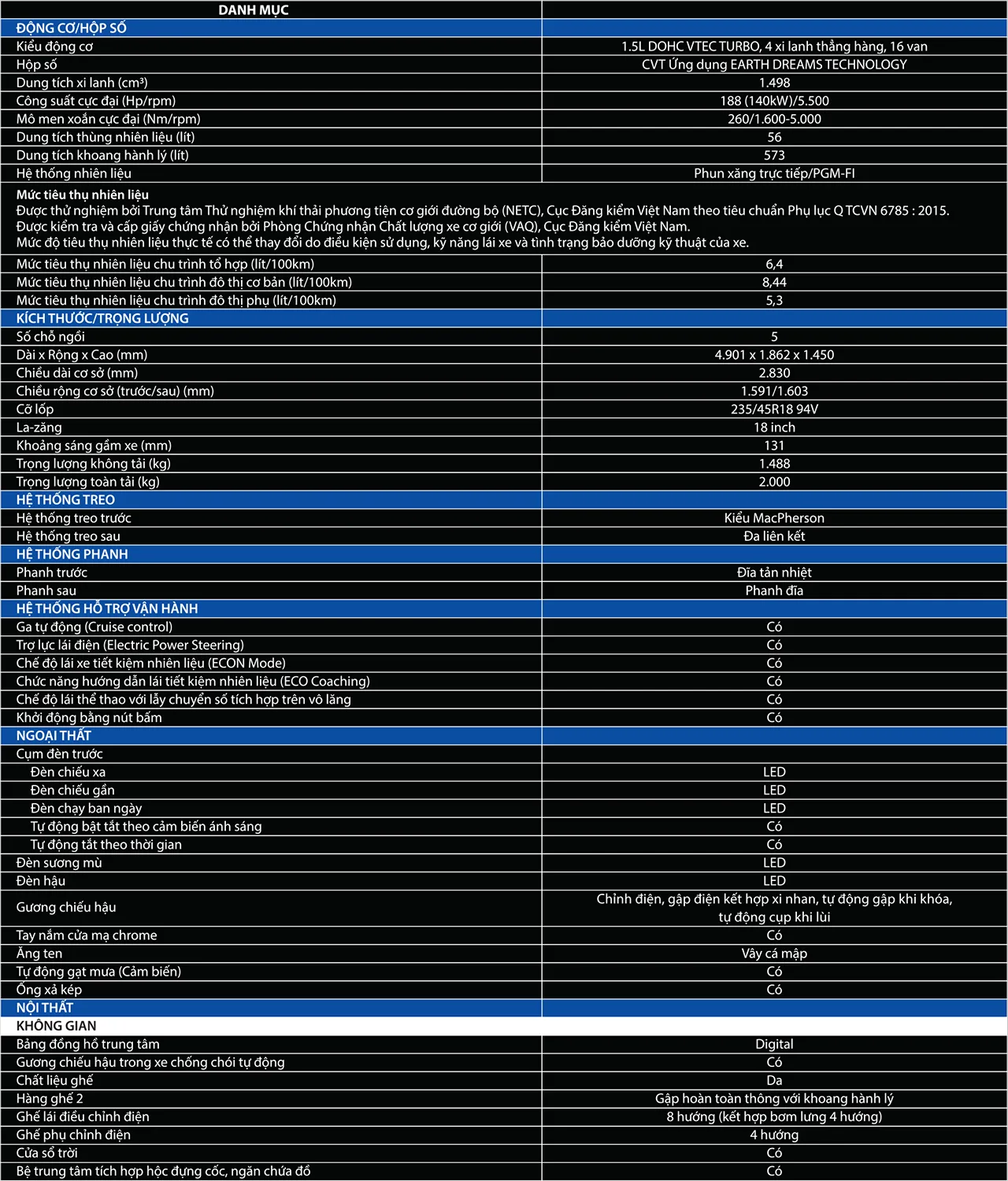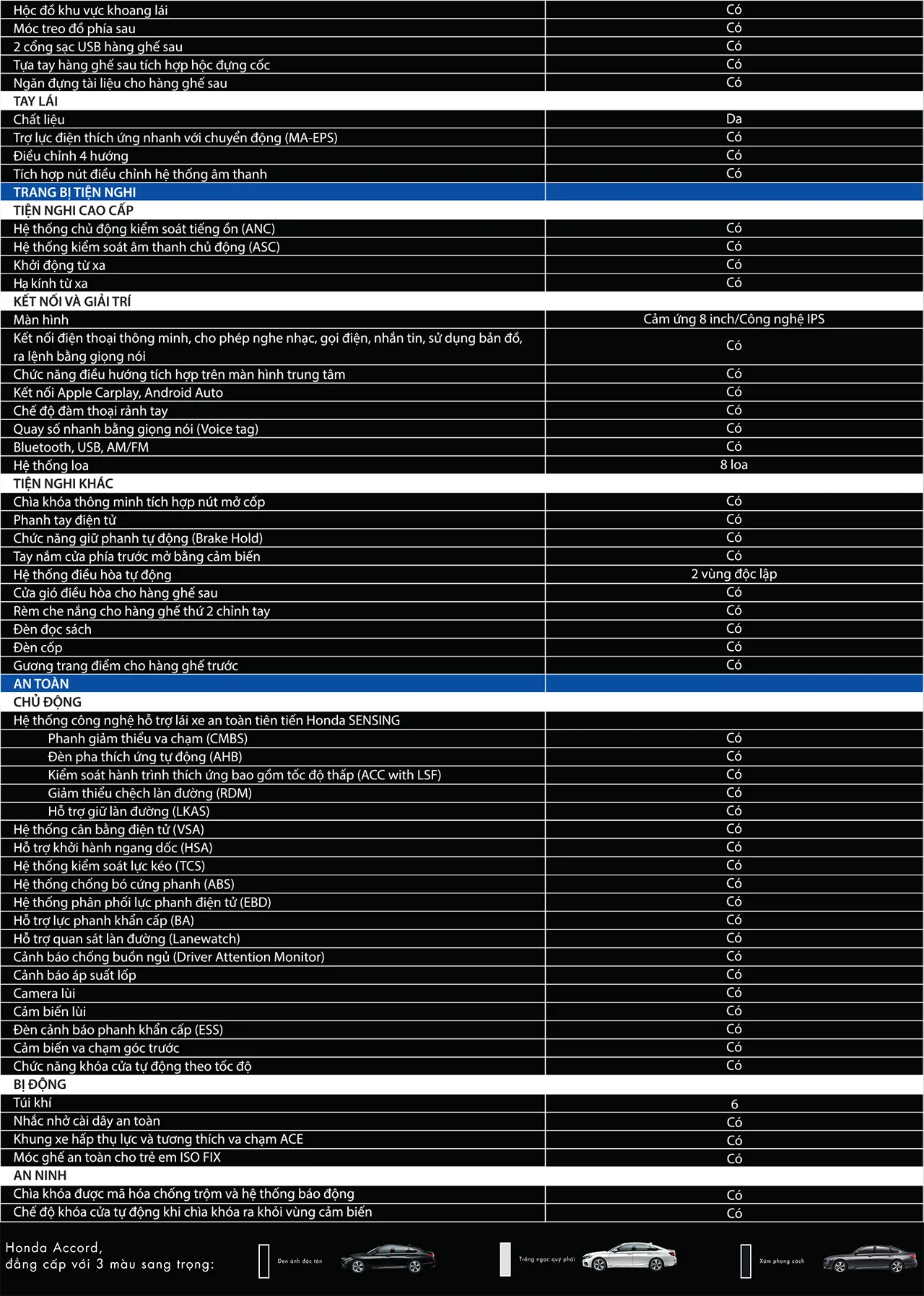 THÔNG TIN CHI TIẾT XE HONDA ACCORD