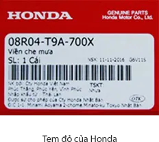 - Được đóng gói trong thùng có tem đỏ của Honda trên tem ghi rõ nguồn gốc xuất xứ, nơi sản xuất phụ kiện